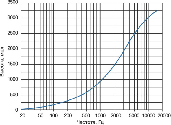 Это обстоятельство позволяет построить график, выражающий зависимость двух шкал – частоты колебаний и субъективно осознаваемой высоты: