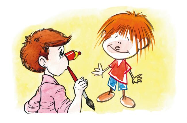 А Прутик никого не раскрашивал. Он в эту минуту подозрительно быстро что-то рисовал на ровной стенке волшебной кисточкой учителя.