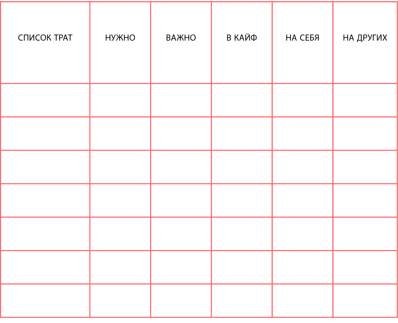 Что ж, давай посмотрим, как тратишь деньги ты? Возьми ручку, сейчас тебе предстоит заполнить вот такую табличку.