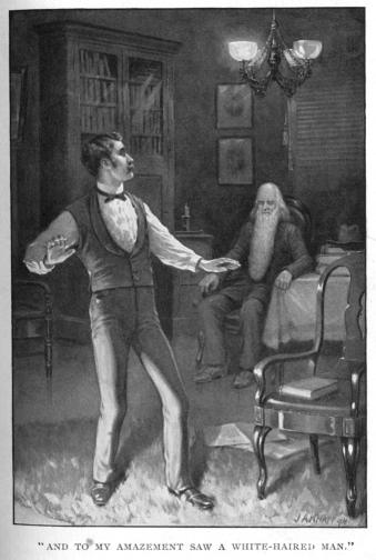 Мгновенно я повернулся по направлению звука, и к моему изумлению увидел беловолосого человека, сидевшего в противоположной стороне комнаты и пристально смотрящего на меня, с предельным самообладанием. Я не трус и не тот, кто верит в привидения или духов, и все же его взгляд превратил меня в лед на том месте, где я стоял. Это не было сверхъестественным появлением. Наоборот – обыкновенный человек из плоти и крови. Однако приключения дня, погода, кошмарная суровая ночь – все это способствовало крайнему напряжению моих нервов, и я задрожал с головы до ног. Заметив это, пришелец мягко сказал: «Успокойтесь, мой дорогой сэр. Вам нечего бояться. Сядьте». Я послушался его механически и, достигнув на какое-то время подобия самообладания, принялся мысленно изучать моего посетителя. Кто он? Что он такое? Как он вошел, что я его не заметил? И почему? Какое у него ко мне дело? Все эти вопросы быстро промелькнули в моем уме и так же быстро погасли, без ответа.