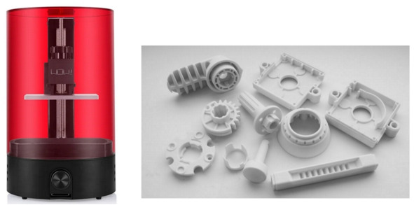 В этой программе можно установить скорость печати, коэффициент заполнения и многое другое. После конвертации файл с G-кодом загружается в ЗД принтер. Из-за послойного формообразования можно изготавливать детали любой сложности. Для 3D печати используются различные материалы. Наиболее распространённые PLA, ABS, PVA пластики, нейлон, резина, металлический порошок. Самый производительный процесс ЗД печати – это процесс стереолитографии. В процессе стереолитографии слой материала образуется на всей площади поверхности одновременно. Яркие лучи света, передаваемые от проектора, попадают на прозрачное стекло. Стекло находится на дне ванны с жидким светоотверждающим материалом. Проектор под стеклом передает изображение поперечного сечения каждой части детали. Таким образом материал на стекле отвердевает и вытягивается слой за слоем из ванной вверх.
