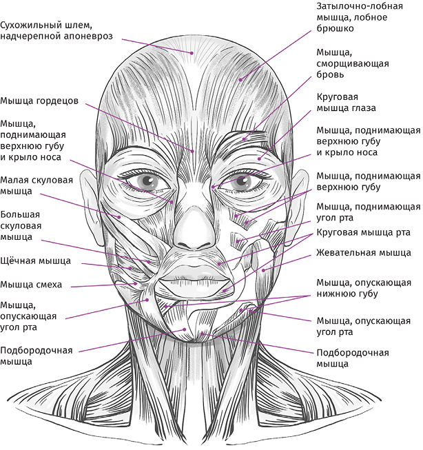 Прежде чем перейти к практической части, я немного расскажу об анатомии лица. Пусть вас не пугает обилие медицинских терминов – это необходимо, чтобы вы понимали, что именно сейчас делаете, с чем работаете. Понимая внутренние процессы, а не просто выполняя механические действия, вы будете заниматься осознанно, а значит, более продуктивно.