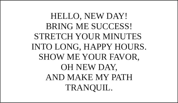 You should place this card next to the place where you sleep in order to read it aloud first thing in the morning. You can place this card in the bathroom (in a place where you’ll notice it) or on the toilet seat – the important thing is that your eyes will come across it first thing after you open them.