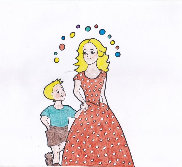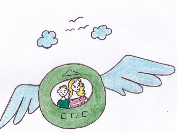 Девушка и мальчик подходили всё ближе. Ветер открыл прелестное лицо, которое радостно улыбалось всему на свете. Волосы украшал венок из полевых цветов, а над головой кружили разноцветные шарики, похожие на бабочки.