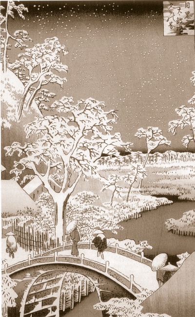 Андо Хиросигэ. Каменный мост и холм Юхи в Мэгуро. 1856 г.