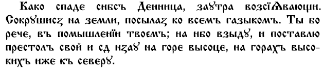«Или при Тебe съставихъ свeтъ утреннїй, Денница же вeсть чинъ свои…»