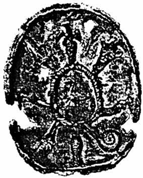 Такое чтение может быть оправдано тем, что три небесных тела уже выброшены на внешние орбиты. Потому фигуры, их символизирующие, находятся в верхней части медальона.