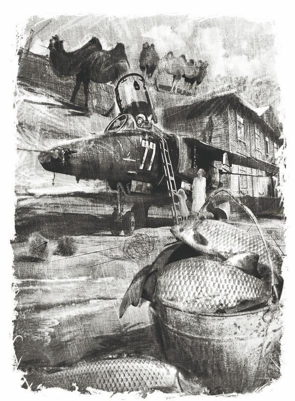 Лето, пустыня, жара. Ветер гонит по аэродромным плитам мелкий песок и местные колючки, называемые «перекати-поле». Рядом с проволочным ограждением пасутся верблюды, на проволоке сидят и высматривают еду голодные худые вороны.