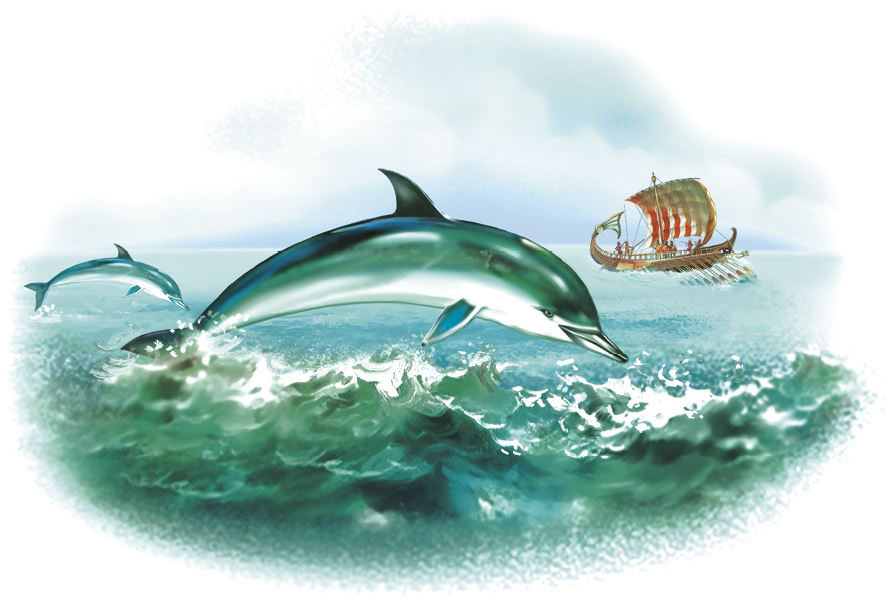 В мифах Древней Греции дельфины занимают очень почетное место. Само слово «дельфин» греческое, его буквальное значение «вышедший из материнского лона». Возможно, дельфина назвали так за его гладкую, как у младенца, кожу. А еще в Древней Греции был город Дельфы, славившийся большим храмом, посвященным богу красоты Аполлону. Слова «Дельфы» и «дельфин» однокоренные, название города тоже происходит от «материнского лона». Исторически Дельфы и дельфины никак не связаны, но сходство в названиях могло породить известный миф, вот какой.