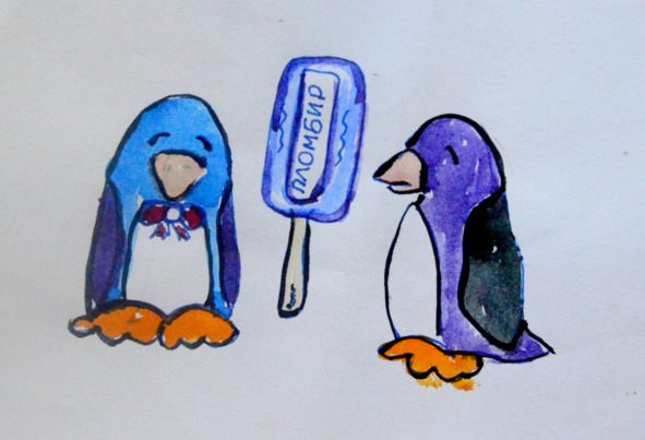 довольные, веселые пингвины