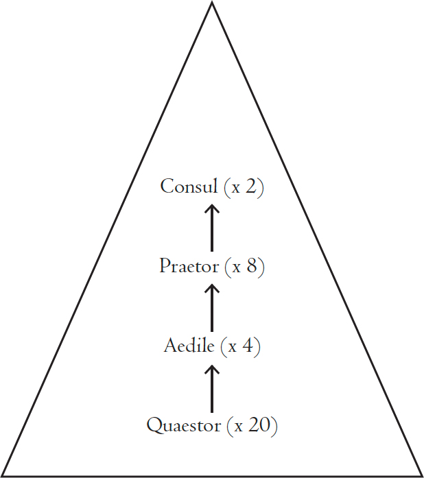 Before a man could even think about becoming a consul, he needed to gain some experience. As he approached the age of thirty, a budding patrician politician would strive first to be elected as a quaestor, whose tedious responsibilities involved supervising the treasury. At the end of the year, funds permitting, quaestors became life members of the Senate, and the more appealing prospect of running for the senior magistracies, aedile, praetor, then consul, suddenly became feasible. Beyond the consulship, men could become censors, who routinely examined the membership of the Senate.