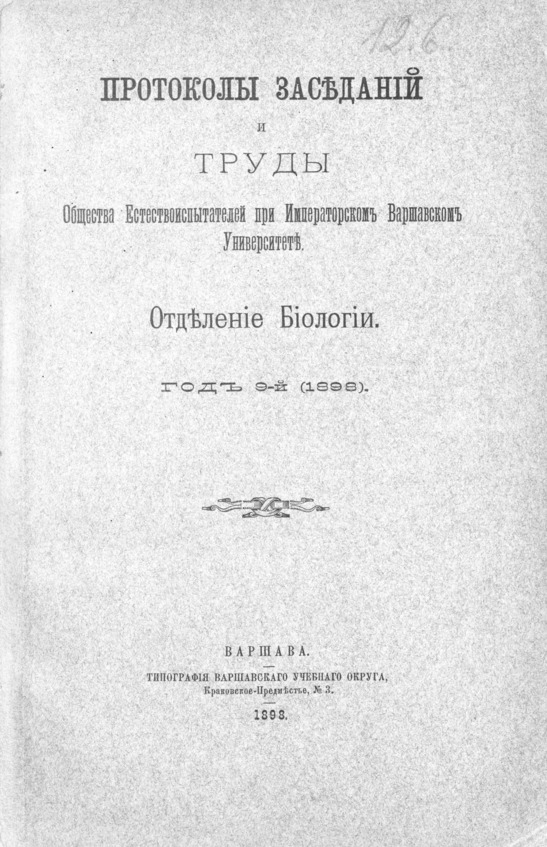 Вечером того же дня Владимир Прохорович Амалицкий, Александр Михайлович Скринников и Константин Адамович Воллосович предложили принять Православлева в действительные члены Варшавского общества естествоиспытателей по отделению биологии81.