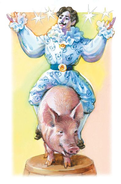 Пришлось лечить бедную Чушку горячими припарками и чуть ли не по одному выбирать из щетины разбухшие зёрна. Чушка смогла выступать только через две недели. К тому времени я придумал для неё новый номер.