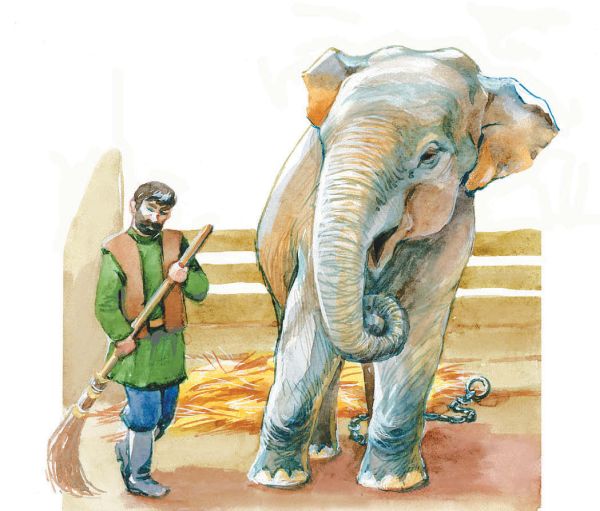 Дорогой нам встречались взрослые, дети. Они бежали за слоном. Многие протягивали ему яблоки, апельсины, белый хлеб, конфеты. Но Бэби не обращал внимания на все эти чудесные вещи; ровным шагом он шёл за мной. И я благополучно привёл его в цирк.