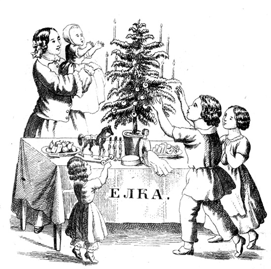 М. Е. Салтыков-ЩедринОсвоение в России рождественской елки поражает своей стремительностью. Если в начале 1830‐х годов о ней еще говорилось как о «милой немецкой затее», то в конце этого десятилетия она уже «входит в обыкновение» в домах петербургской знати, а в течение следующего становится в столице широко известной. В середине века из Петербурга, превратившегося в настоящий рассадник елки, она «развозится» по всей России: по ее губернским и уездным городам, а некоторое время спустя – и по дворянским усадьбам. К концу столетия елка была усвоена как в городе, так и в поместье.