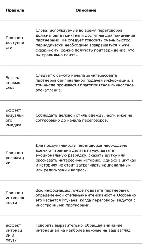 Практика проведения переговоров выработала основные правила, которых следует придерживаться для успешного их проведения.
