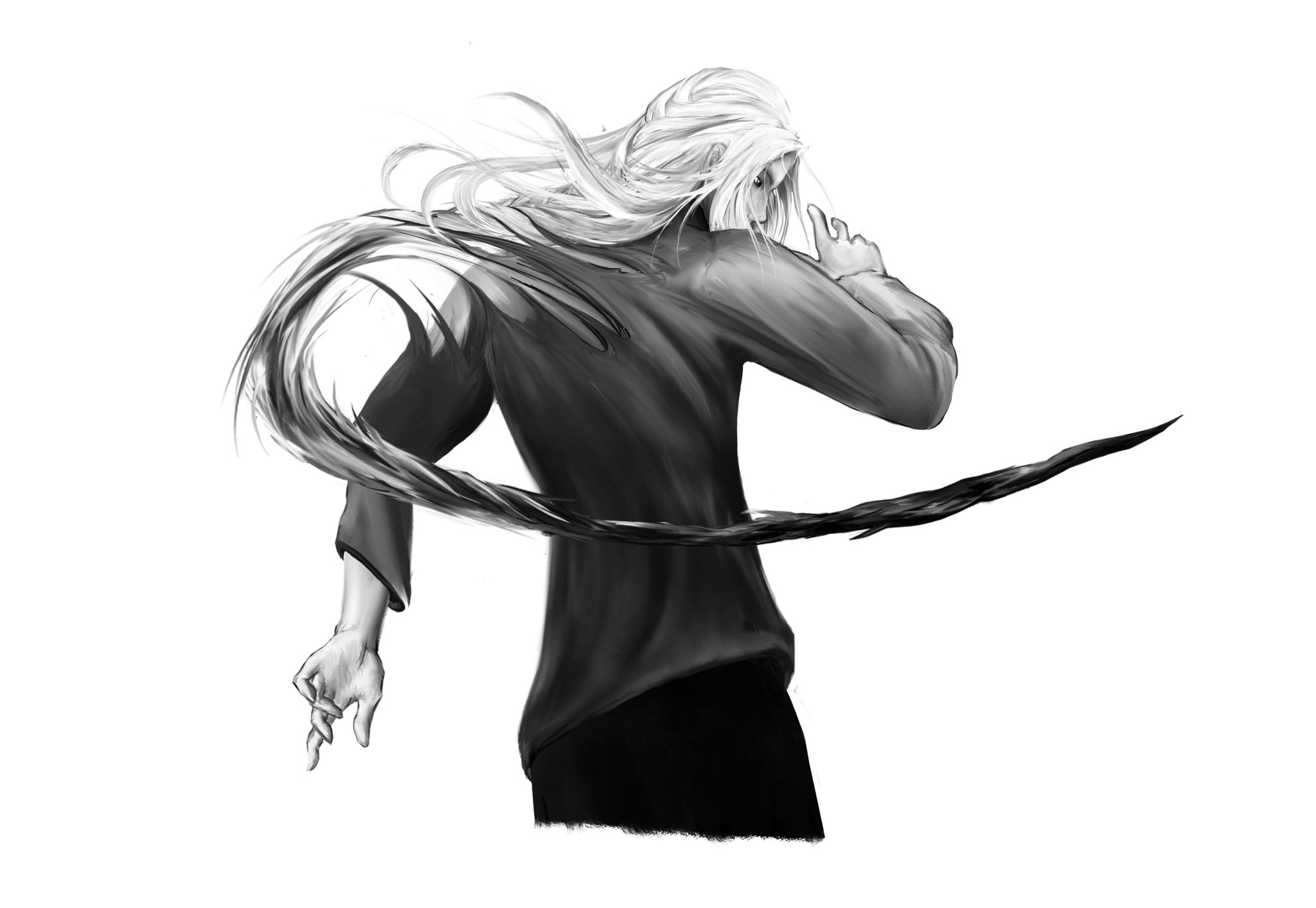 Взмах руки – и коса сбросила с себя тело мужчины и на глазах начала меняться. Она закручивалась, словно тугие мышцы, затягивала пряди и лоскуты куртки. Кровь Гфира ползла по остову, пропитывая нити и волосы, и твердела, принимая вид сухожилий и чёрных торчащих костей. На гранях играли блики, ещё ярче показывая острый конец жгута.