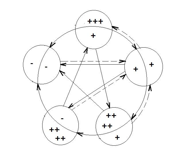 В качестве дополнения: янские органы снаружи круга, иньские внутри. Теперь необходимо расставить стрелки, показывающие связи между элементами системы.