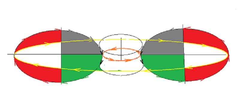 Если поместить данную модель в пространство и придать ей вращение, то на выходе получится фигура, представляющая собой тороид.