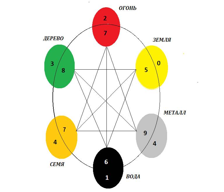 Числовые вибрации первоэлементов системы.Дерева : Янская составляющая -3, Иньская -8.
