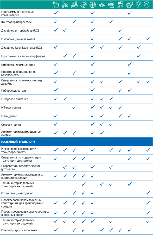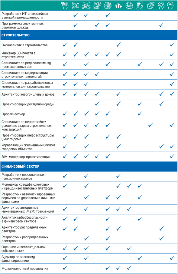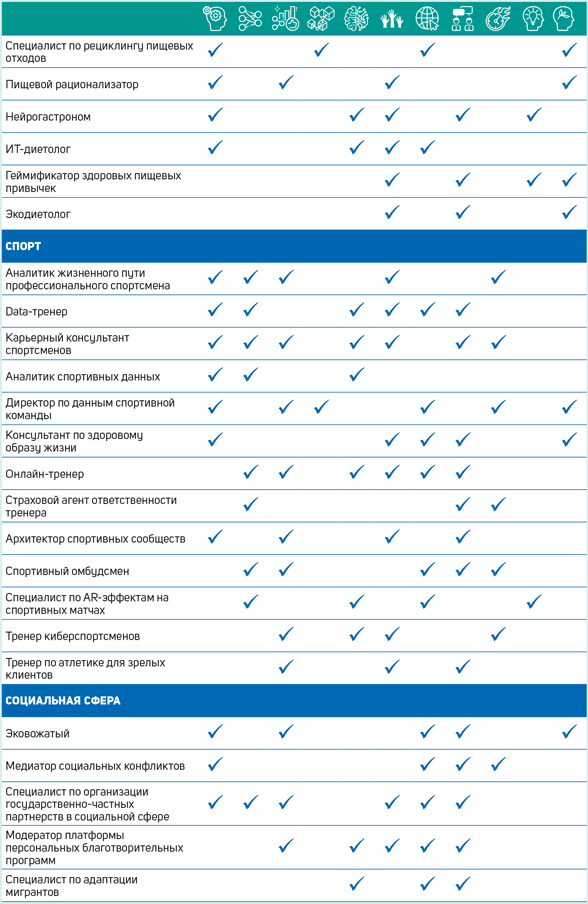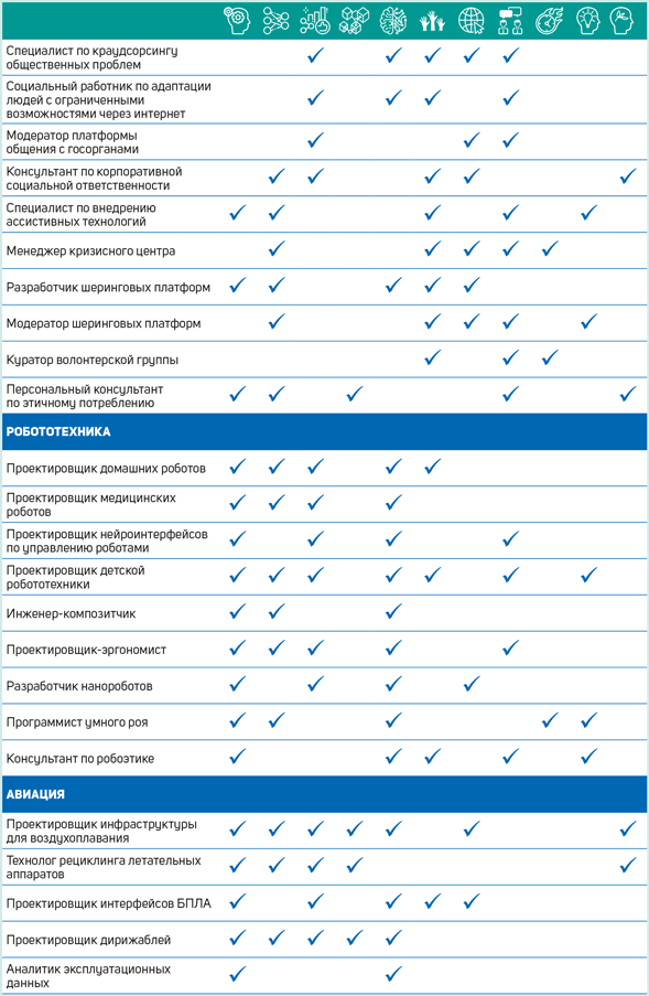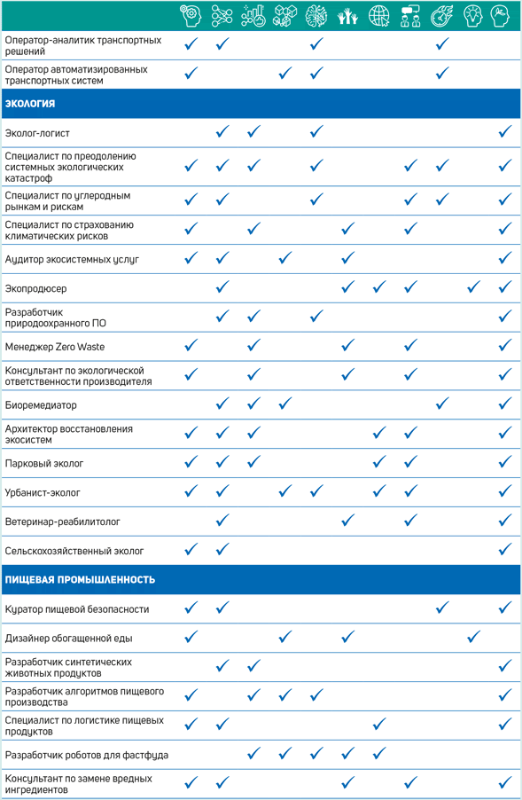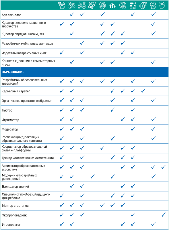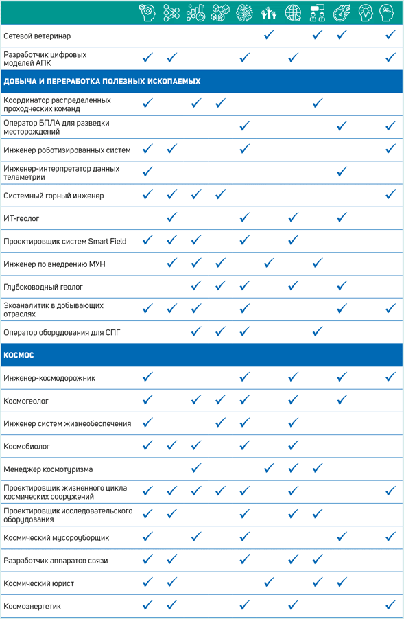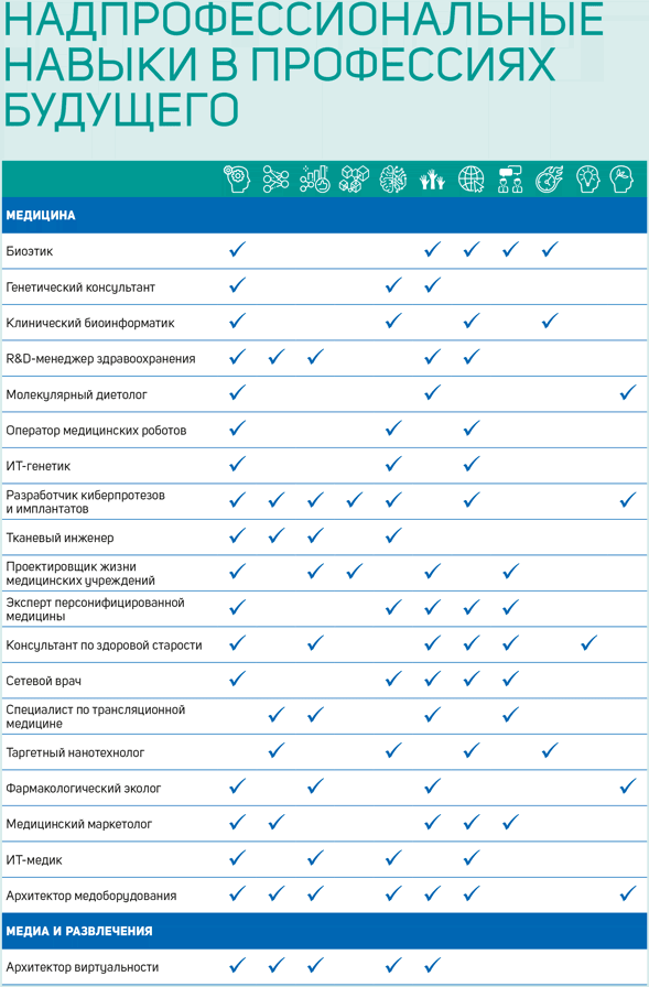 Для каждой профессии эксперты выделили набор важнейших надпрофессиональных навыков (подробно о них мы расскажем ниже). Эти навыки обозначены маленькими картинками.