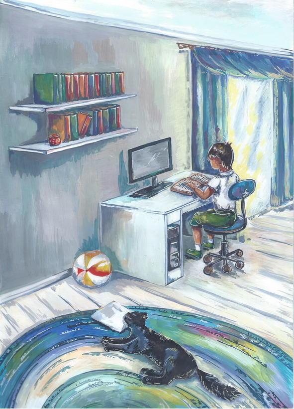 Вначале он перемыл все тарелки на кухне. Потом спел все песни, которые вспомнил. Потом еще три новых песенки сочинил. Он их спел один раз. Хотел спеть еще раз, но забыл. Тогда он решил сделать что-то такое, что он не забудет. Он думал, думал и понял, что можно нарисовать что-нибудь для мамы. Он нарисовал траву, потому что мама очень любила траву. А потом он решил нарисовать что-нибудь для папы и для Алекса.