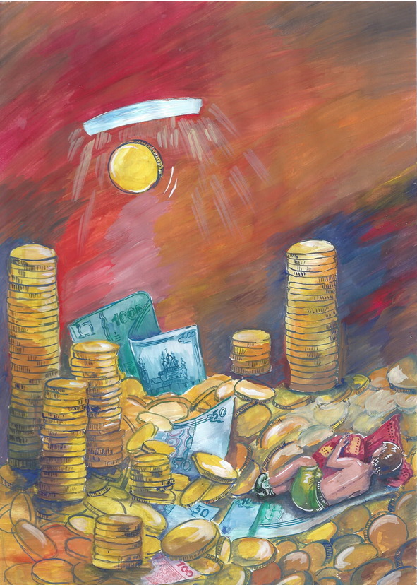 Домовенку в свинье тоже очень понравилось. Он укрылся купюрами, которые там были, и для мягкости положил несколько купюр себе под голову и под спину. А когда ему было скучно, Домовенок стал пересчитывать деньги Эрвина. Он их раскладывал стопочками, а они сверху падали и звенели. Домовенок так любил считать деньги, что почти не вылазил из копилки. И чем больше он считал, тем больше ему это нравилось. Он совсем забыл про конспирацию и начал считать деньги, когда вся семья была дома. Монеты звенели, кот вздрагивал. Эрвин бежал к копилке. Но ничего увидеть там не мог. Он тряс свинью, и Домовенок трясся вместе с монетами. Убедившись, что монеты на месте, Эрвин уходил на кухню. А кот оставался в холле и напоминал Домовенку о необходимости конспирации. И когда ему пришлось сделать это в пятый или шестой раз, кот не выдержал и переселил Домовенка.