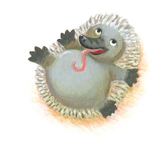 Но вместо того, чтобы уколоть Тидаллика, ехидна перекатилась на спину и весьма странно разлеглась лапами кверху. При этом она высунула свой длинный язык, лапы раскинула в разные стороны и запела дурацким голоском песенку.
