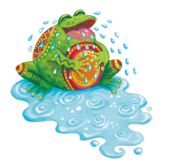 И вот явился угорь. Встал на хвост и давай раскачиваться взад-вперёд, завязывая себя самого в узлы. И – о ужас! – он сплёл такой крепкий узел, что не смог развязаться. Теперь угорь извивался по земле, истошно призывая на помощь. Это было уже слишком, Тидаллик не сдержался. Из жабьего брюха донёсся рокот сродни грому, из пасти хлынул мощный поток. Жадный жаб не мог остановиться, его разрывало на части от неуёмного хохота. С каждым новым приступом смеха всё больше и больше воды выплёскивалось из Тидаллика. Поначалу звери ликовали, но их радость быстро перешла в панику, когда они поняли, что окружены водой.