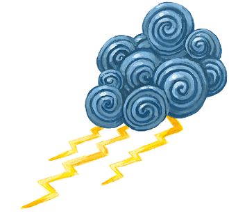 Так Гром и Молния поселились среди склонов и обрывов на каменистых вершинах высоких гор. Но и это не помогло. Когда к ним в гости пришёл Дождь, Молния решил поиграть в догонялки и помчался с головокружительной скоростью по склонам и вершинам.