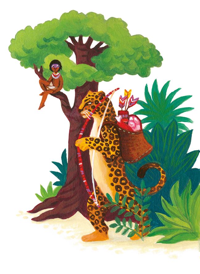 Но в тот же миг раздался смех – и радости Ботока как не бывало. Странный смех эхом разнёсся по лесу: дикий, как рёв большого хищника, но весёлый, как смех взрослого человека. Он посмотрел вниз и увидел ягуара, который стоял на задних лапах, держа в одной руке лук, а в другой стрелу.