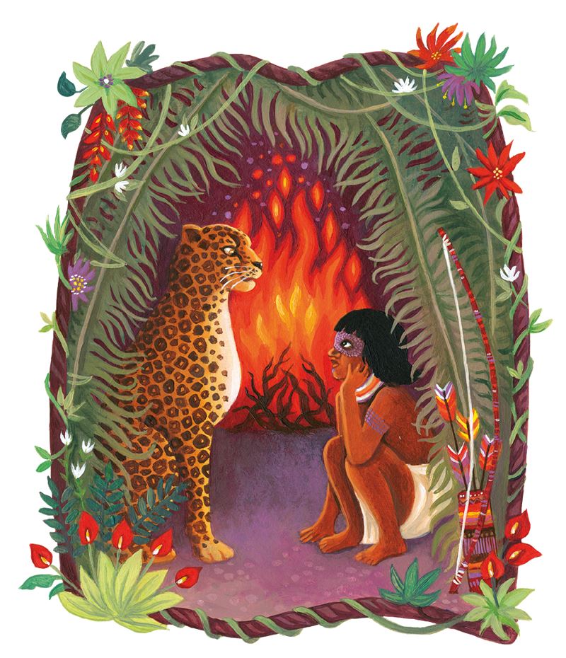 Вот почему теперь ягуары охотятся без стрел и лука, вот почему они едят сырое мясо. И вот почему они не любят людей. Всё потому, что когда-то давным-давным-давно один мальчик нарушил свою клятву.