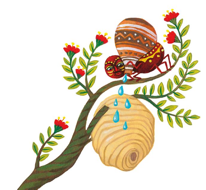 – Спасибо тебе, – прожужжали шершни и залетели в горшок. Когда последний из них оказался внутри, Ананси приложил к горловине лист подорожника и крепко примотал его.