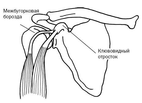 Грудино-ключичные связки соединяют медиальный, или внутренний, конец ключицы с верхушкой грудины (не показано). Они играют важную роль, удерживая плечевой комплекс прикрепленным к телу и в то же время обеспечивая некоторую подвижность между ключицей и грудиной. Без свободного движения в этом месте вам было бы трудно двигать плечом или вытягивать руки над головой.