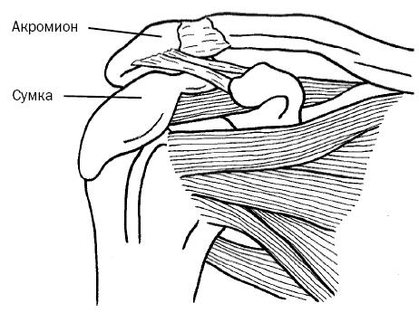 Рис. 1.15. Вид спереди на правое плечо, демонстрирующий субакромиальную сумку