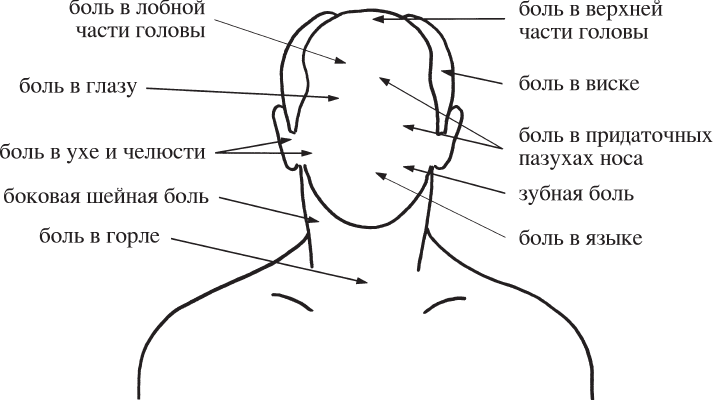 Пусковые точки вызывают самые разнообразные симптомы в области головы и шеи. Некоторые их воздействия противоречат всему, что вам всегда казалось несомненным. Пусковые точки могут стать причиной боли и гиперчувствительности в зубах, боли и дискомфорта в ушах, боли и красноты в глазах, болей в гайморовых пазухах и выделений из них, ригидности шеи, хронического кашля и ангины. Они обусловливают нарушение равновесия и головокружение. Они затуманивают зрение и заставляют слова танцевать на странице, когда вы пытаетесь читать. Они вызывают онемение губ, раздражение языка и опущение век (Тревел и Симонс, 1999, 308–316).
