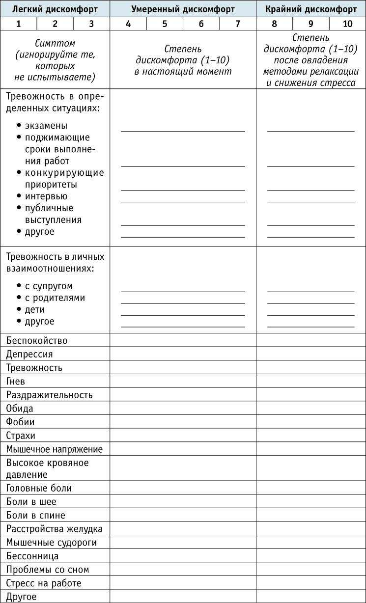 Когда вы воспользуетесь этой рабочей тетрадью, для того чтобы овладеть методами снижения стресса, оказывающими наилучшее воздействие на ваши симптомы, вы можете вернуться к этому контрольному списку, с тем чтобы измерить степень улучшения вашего состояния.