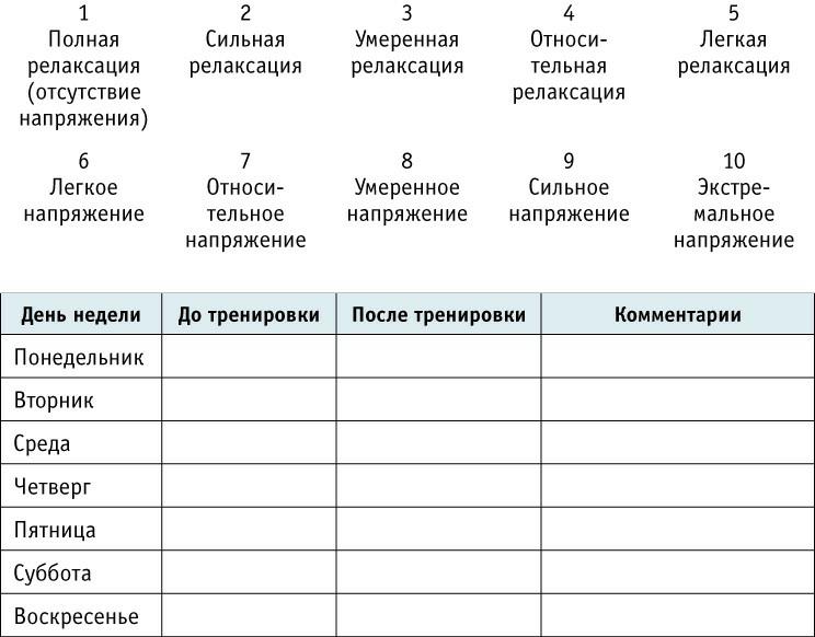 Для того чтобы вести соответствующие записи о вашем самочувствии до и после упражнений, используйте «Дневник общего напряжения».