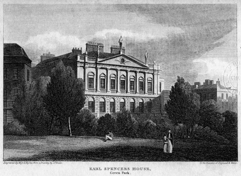 Лондонский особняк Спенсеров, вид из Грин-Парка, литография 1815 года