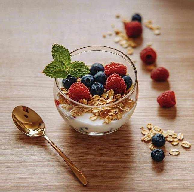 Свежие или замороженные ягоды (клубника, малина, черника) – 1/2 стакана