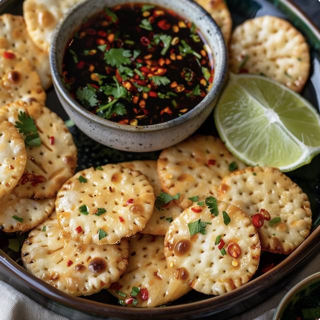Подача: Подавайте крекеры теплыми с теплым или комнатной температуры соусом.