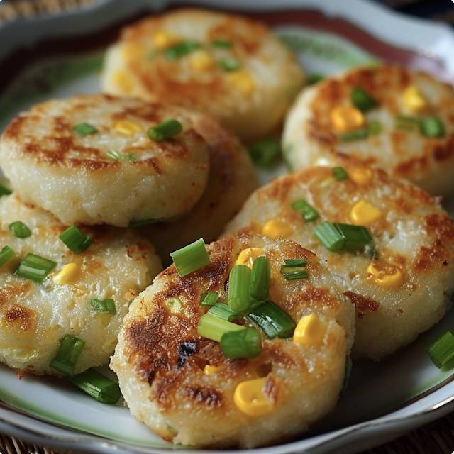 Khanom Khrok – это традиционное тайское блюдо, представляющее собой сладкие кокосовые пирожные, приготовленные на горячей сковороде. Эти маленькие, нежные и пористые лепешки сочетают в себе аромат кокосового молока и легкую сладость, часто украшаются зеленым луком, кукурузой или даже тыквой для добавления дополнительного вкуса.