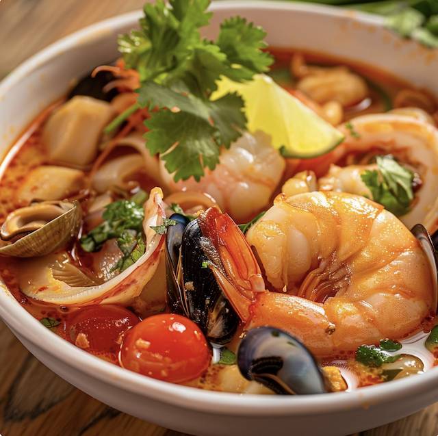 Том Ям Тхалей идеально подходит для тех, кто любит пряные и ароматные супы с морепродуктами. Этот суп сочетает в себе богатые вкусы и ароматы тайской кухни, создавая незабываемое кулинарное впечатление.