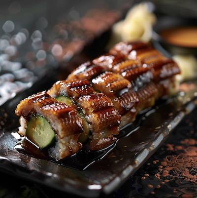 Ролл "Унаги" – это изысканное блюдо японской кулинарии, в котором сочетаются богатый вкус жареного угря с мягкостью авокадо и свежестью огурца. Завершает композицию ароматный соус унаги, добавляющий сладковатый привкус и делающий это блюдо незабываемым.