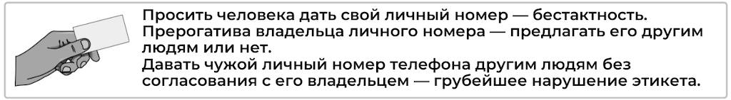 Давать чужой личный номер телефона без разрешения его владельца (кроме исключительных случаев и чрезвычайных ситуаций) – грубое нарушение этикета.