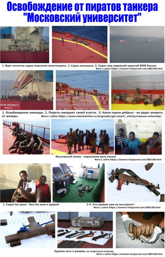 Иностранные средства массовой информации «истерили» по поводу «расстрела» пиратов российскими морпехами, но Министерство обороны РФ категорически отвергло эти измышления, представив доказательства того, как лодка с пиратам благополучно отошла от борта танкера с живыми и невредимыми сомалийцами, хотя у членов экипажа танкера сильно чесались руки, чтобы показать незваным гостям, на чью территорию они влезли без приглашения.
