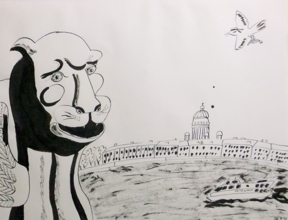 Грифон у Академии художеств. Рисунок Нади Дёмкиной. Тушь, бумага