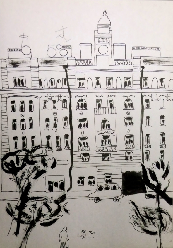 У Шереметьевского дворца. Рисунок Нади Дёмкиной. Линер, бумага