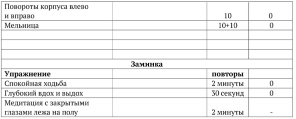 Если в графе «отдых» стоит 0, значит, надо переходить к следующему упражнению без перерыва. Обычно отдых предусмотрен в конце каждого круга упражнений и длится от 30 до 45 секунд. После этого начинают выполнение следующего круга. 3. Время отдыха.