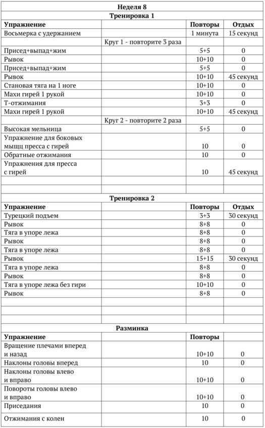 Двухмесячная программа тренировок: